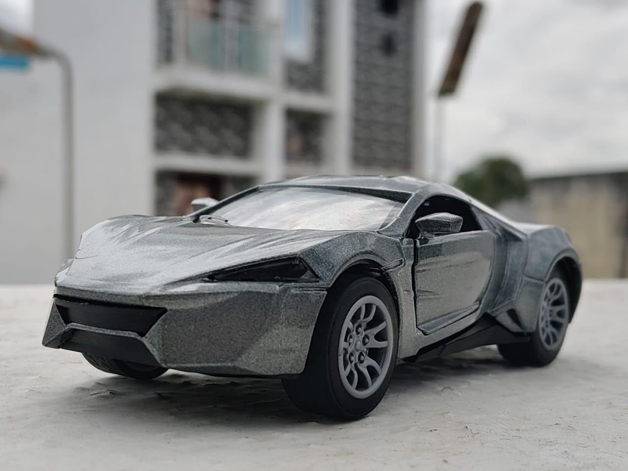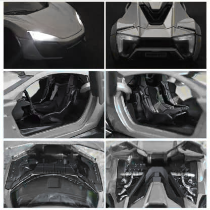 Adofi 1:36 Scale Die-Cast Lykan Hyper Sport Metal Pullback Car Toy With Openable Doors, Lights, And Sounds For Boys Gift,Grey