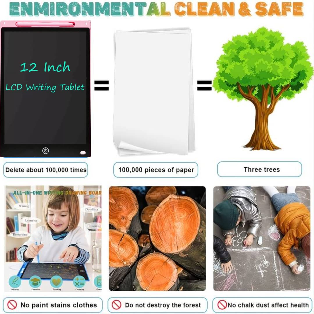Adofi LCD Writing Tablet Screenwriting Toys Board Smart Digital E-Note Pad 12 Inch Light Weight Magic Slate for Drawing Playing Noting by Kids and Adults Best Birthday Gift Girls Boys (Pink)